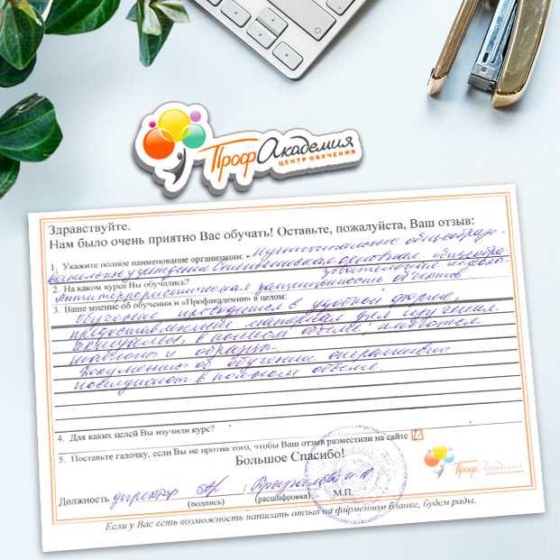 • Лицам, успешно освоившим соответствующую дополнительную профессиональную программу, выдаются документы установленного образца - удостоверение о повышении квалификации «Антитеррористическая защищенность объектов».