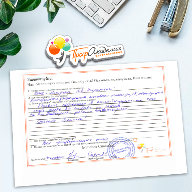 После успешного окончания обучения вы получите документы установленного образца. Высылаем по почте заказным письмом.
